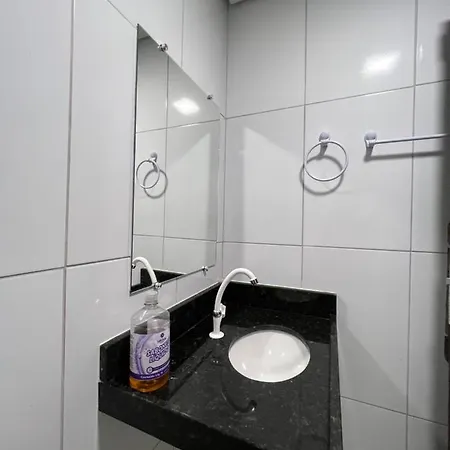 L'appartamento Acomodacao Aconchegante Proximo Ao Centro è dotato di un bagno ad uso esclusivo. Inoltre, ci sono asciugamani.